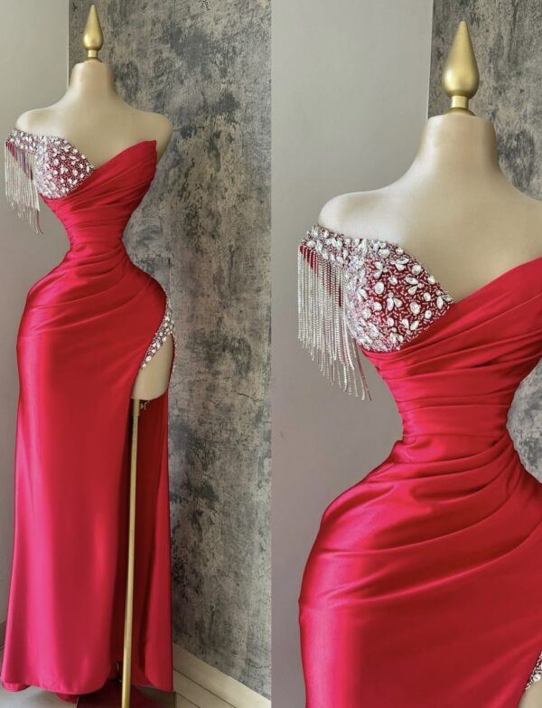• vestido de fiesta con detalle en apliques brillantes en la pierna ₡80,000.00 IVAI
